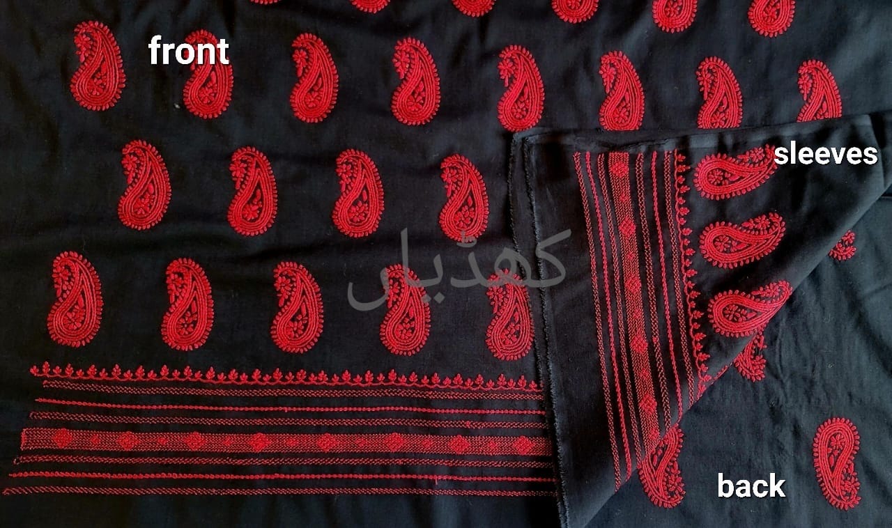Paired with 2.5 meters of plain dyed fabric for the trouser or shalwar, the suit is perfect for festive evenings, cultural celebrations, or elevated daily wear.
