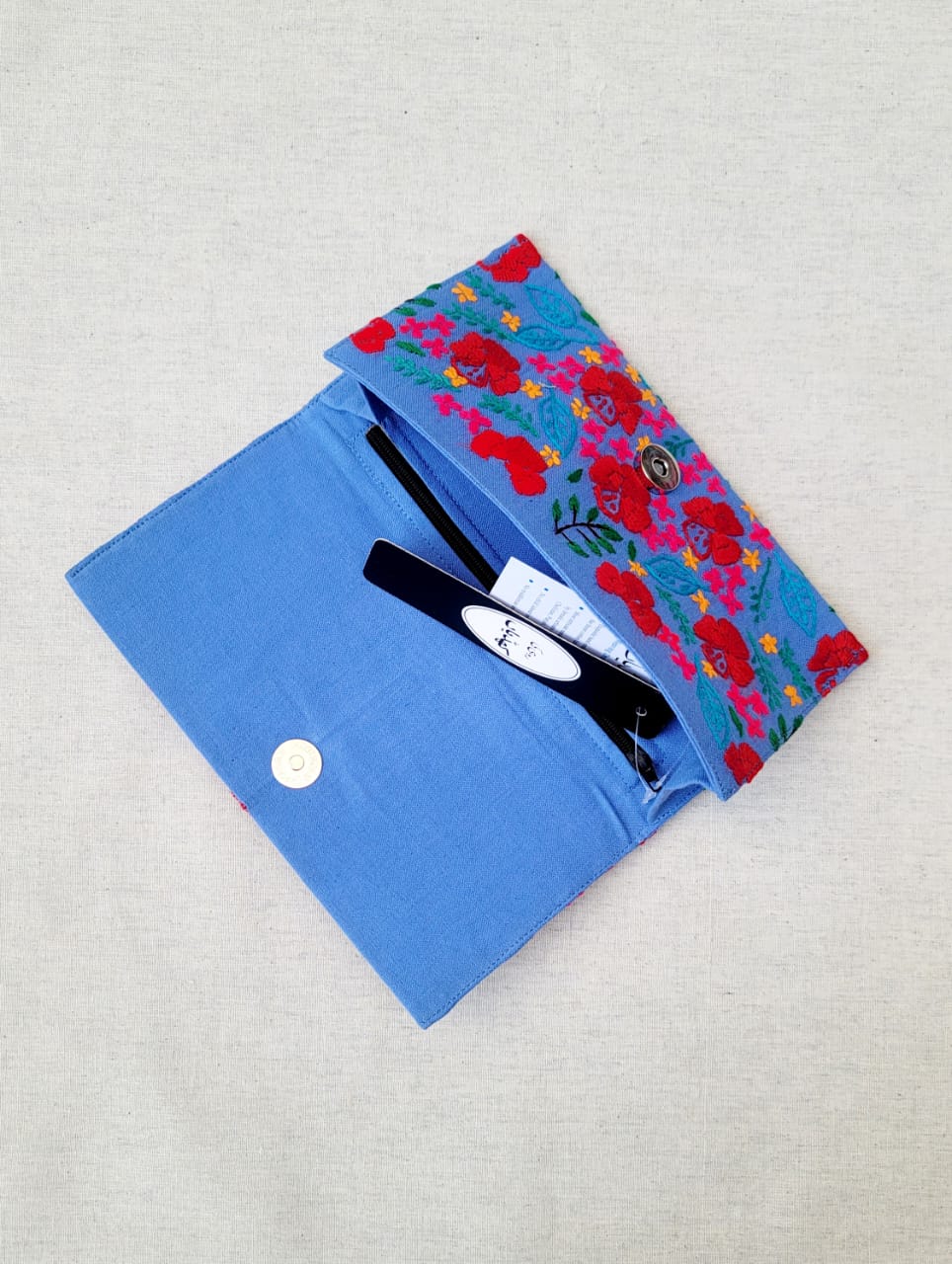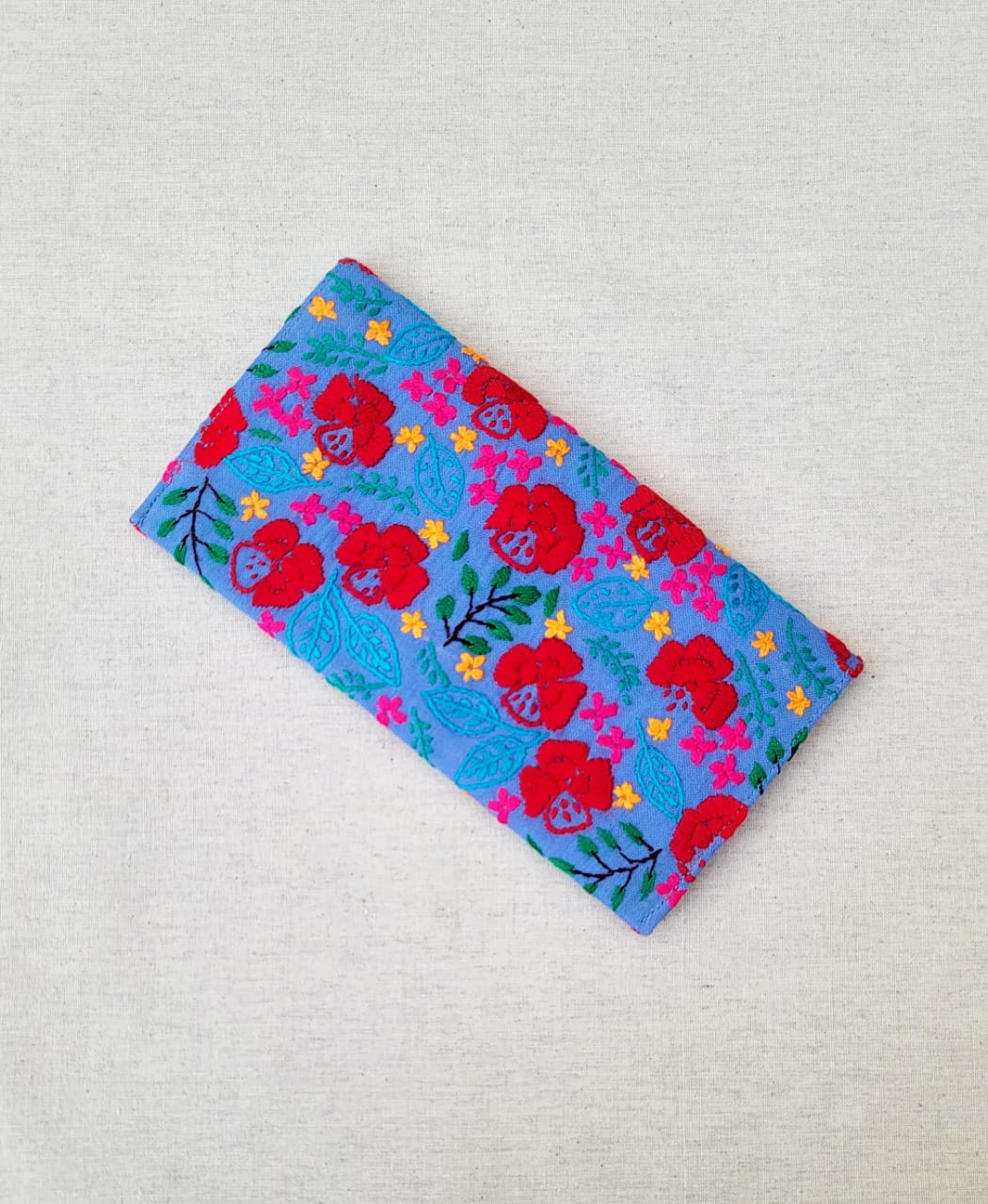 The soothing base with vibrant red and yellow floral embroidery brings out a delicate balance between sophistication and playfulness. Whether you carry it daily or reserve it for special occasions, the Misty Green Wallet adds a touch of cultural artistry to your style. Each piece is handcrafted with attention to detail, ensuring durability and uniqueness in every design.